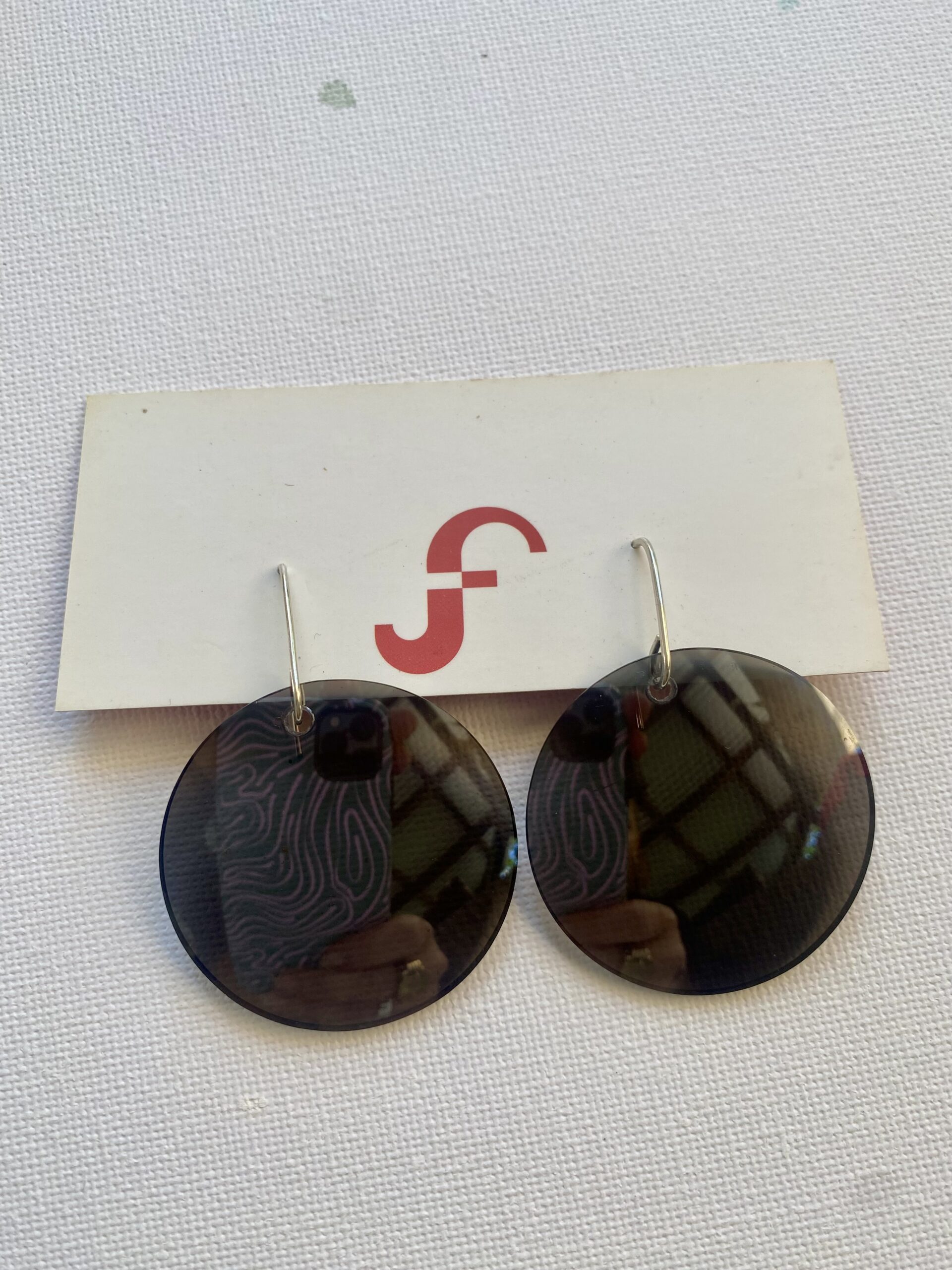 Sterling silver hooks, recycled sunnies lenses, one off a kind. Very near and stylish. Conversation piece.